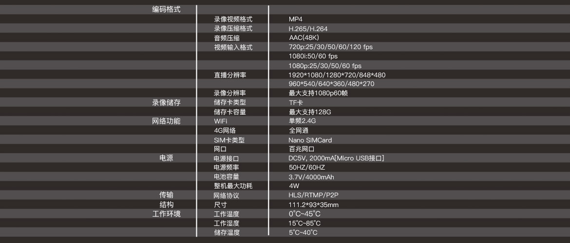 增加OLED屏幕、网口、按键锁定、录像等功能,优化了SIM卡卡座,推流指示灯、APP远程控制等功能,更直观的交互方式、更丰富的网络连接。